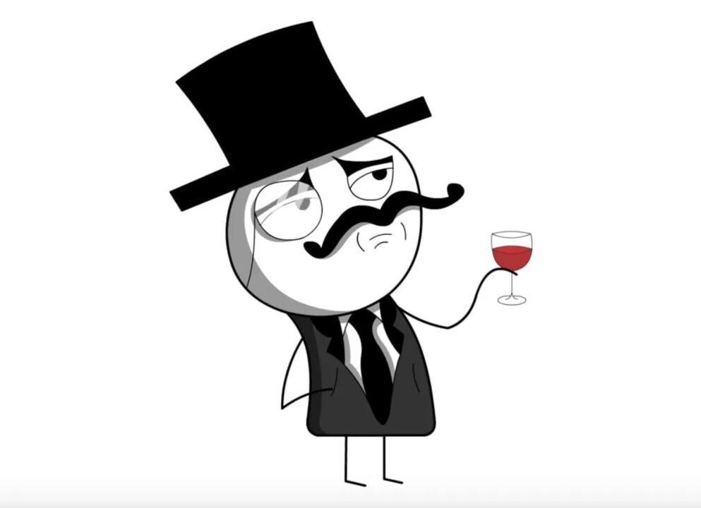 Мем человек с бутылкой за столом