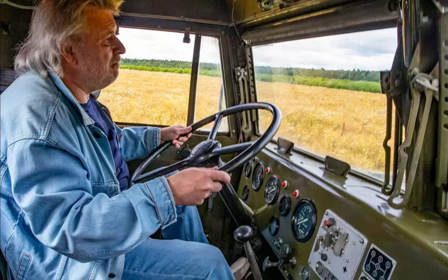Мужик переключает передачи на КРАЗЕ