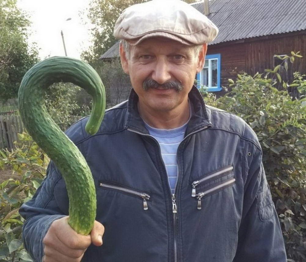 Человек с большим огурцом