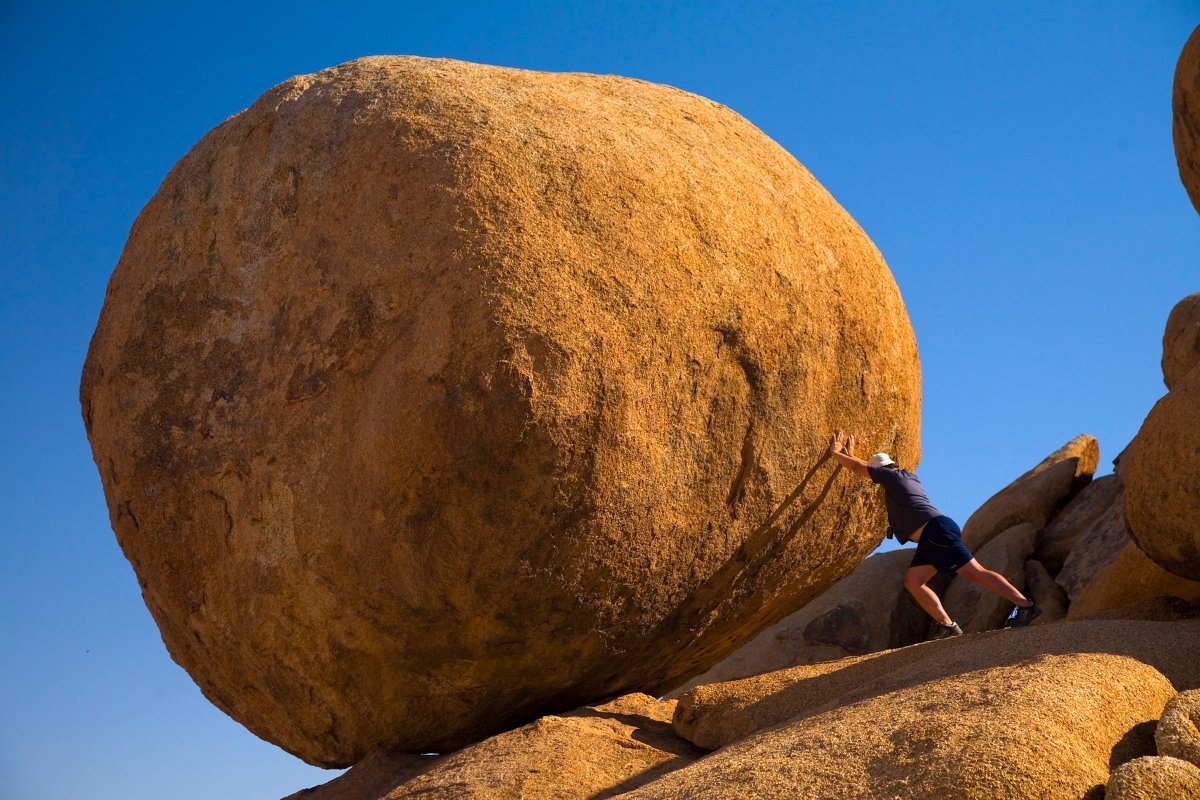 Человек и огромный камень