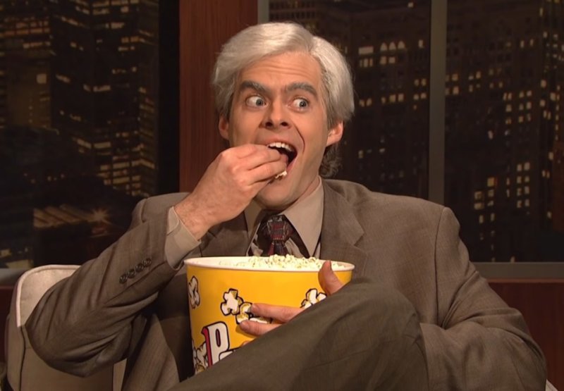 Толстый мужик с попкорном