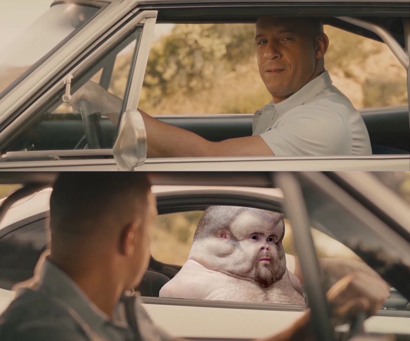 Лысый мужик едет в машине Мем