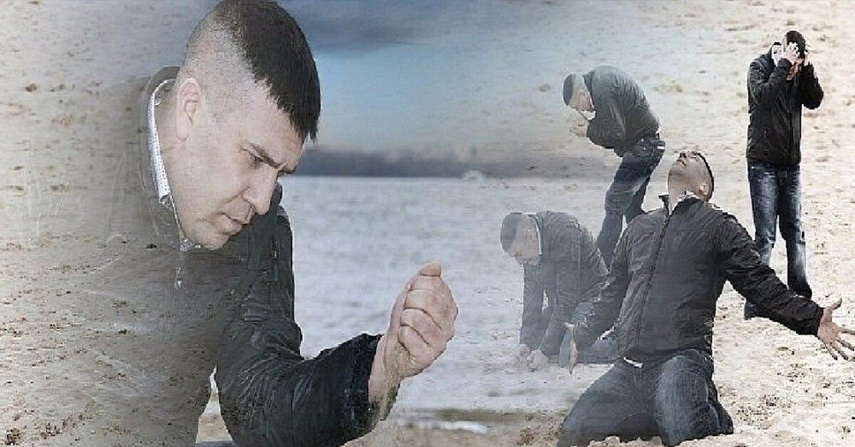 Грустный мужик с песком