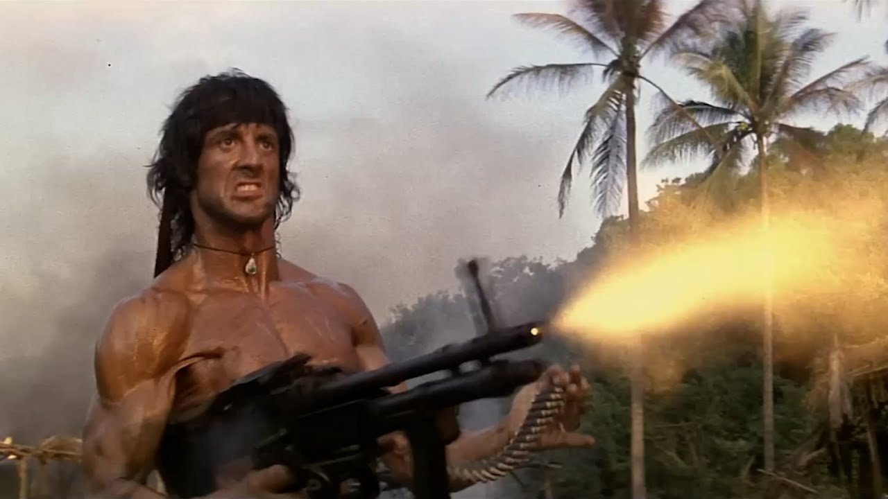 Сильвестр Сталлоне Рэмбо с пулеметом