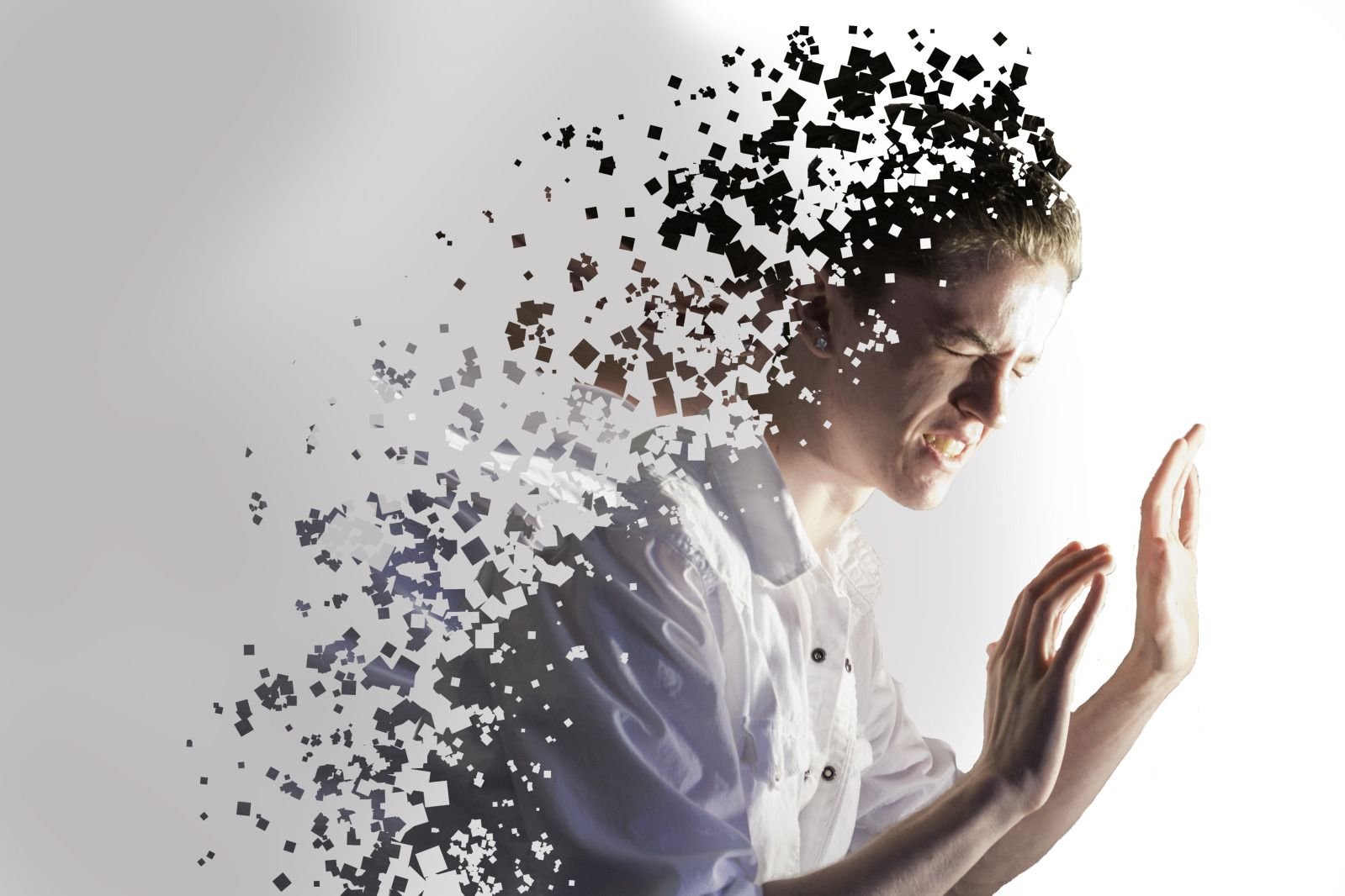 Человек рассыпающийся на пиксели
