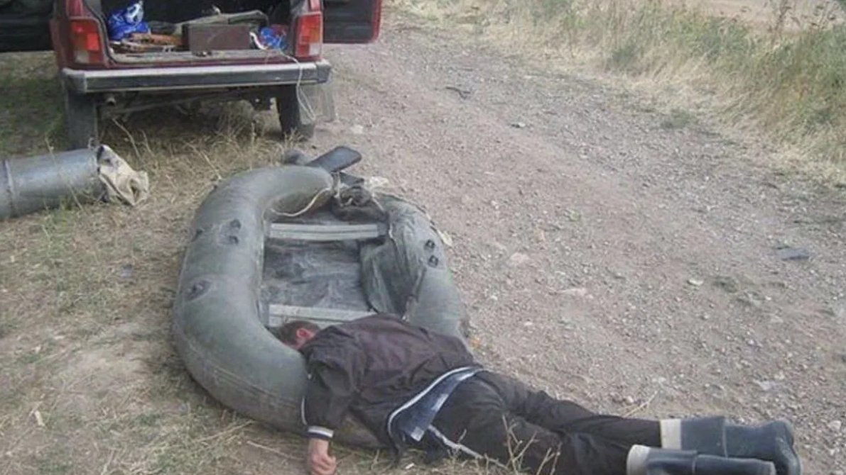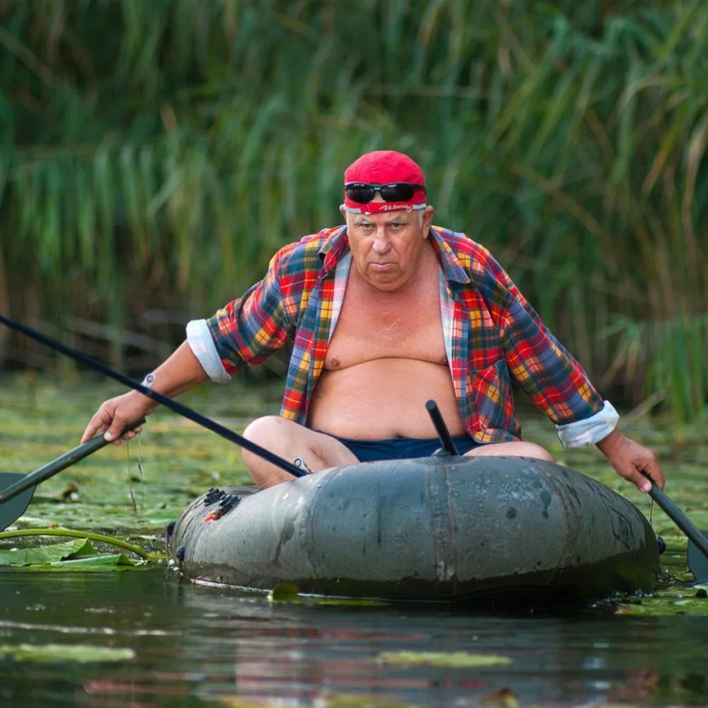 Мужик в резиновой лодке