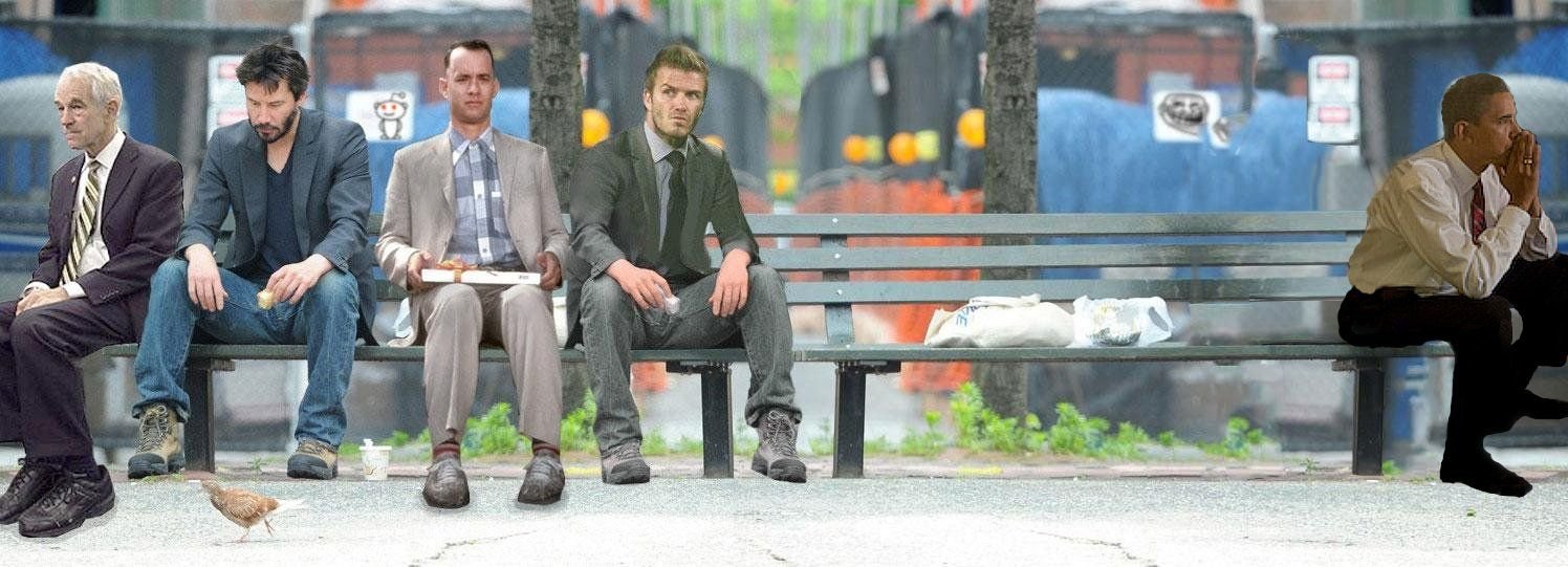 Киану Ривз на скамейке Мем