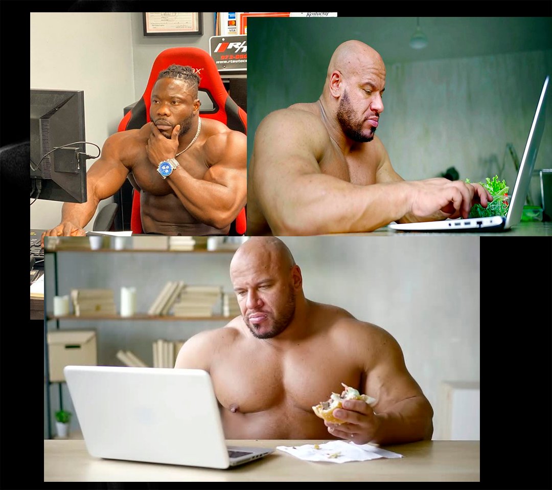 Лысый качок за компом
