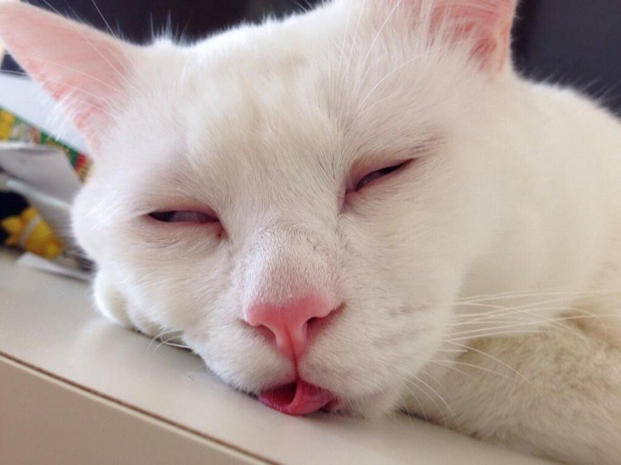 Сонный белый кот