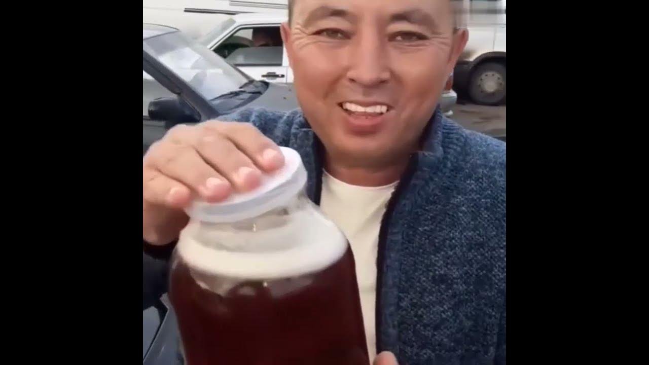 Мужик садится на банку и она лопнула