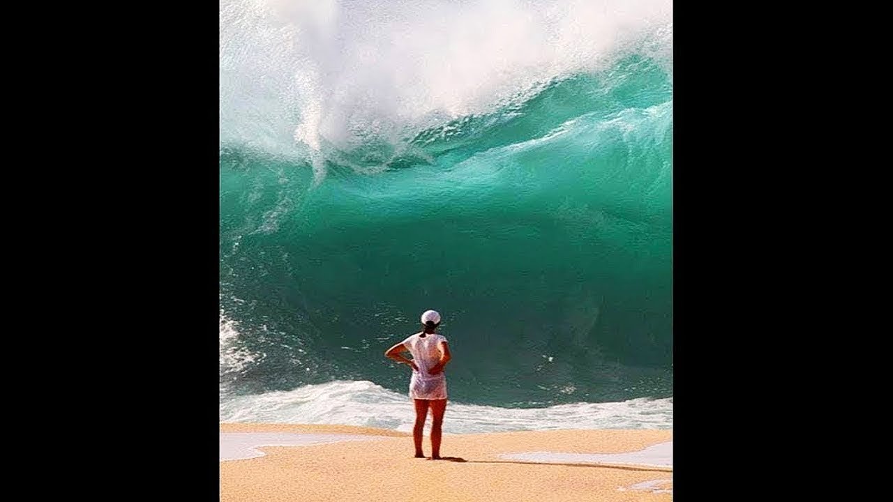 Человек перед волной ЦУНАМИ