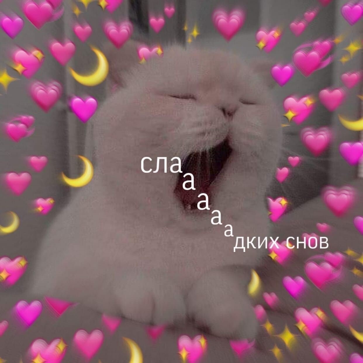 Спокойной ночи котики с сердечками
