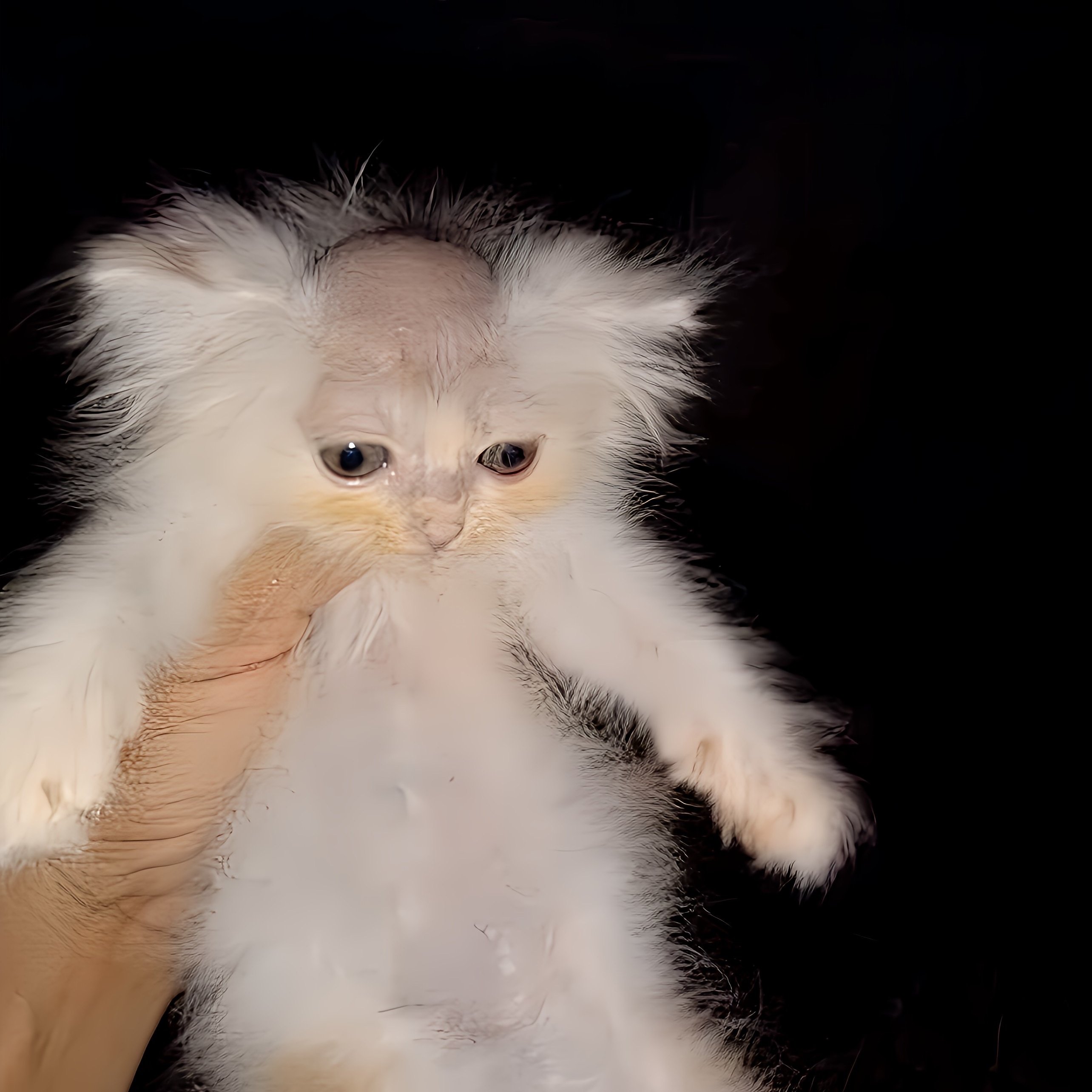 Белый котёнок с лысой головой