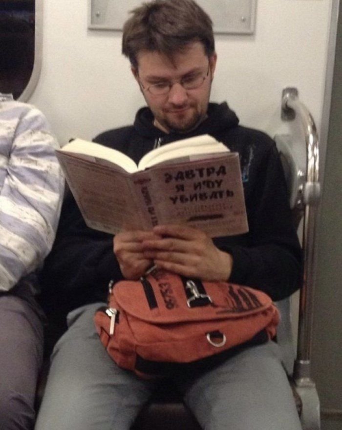 Люди с книгами в метро