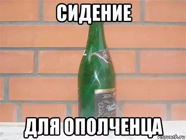 Мем сидит за столом с бутылкой
