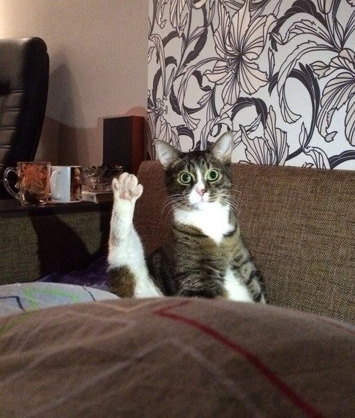 Смешной кот здоровается