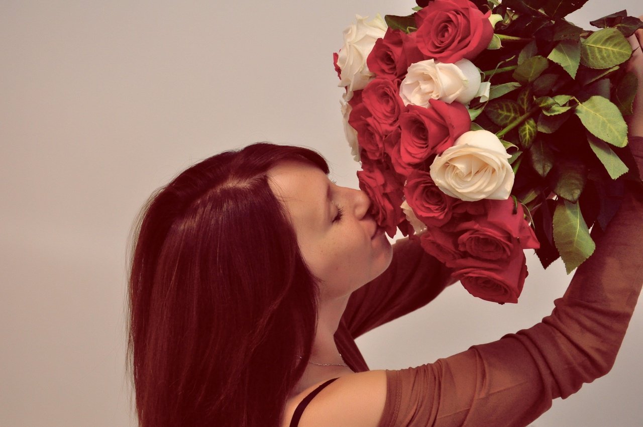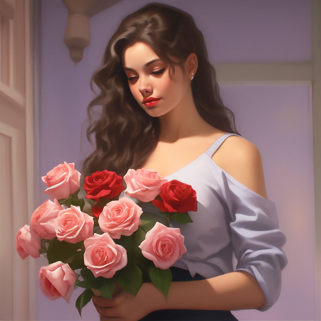 Девушка с букетом роз