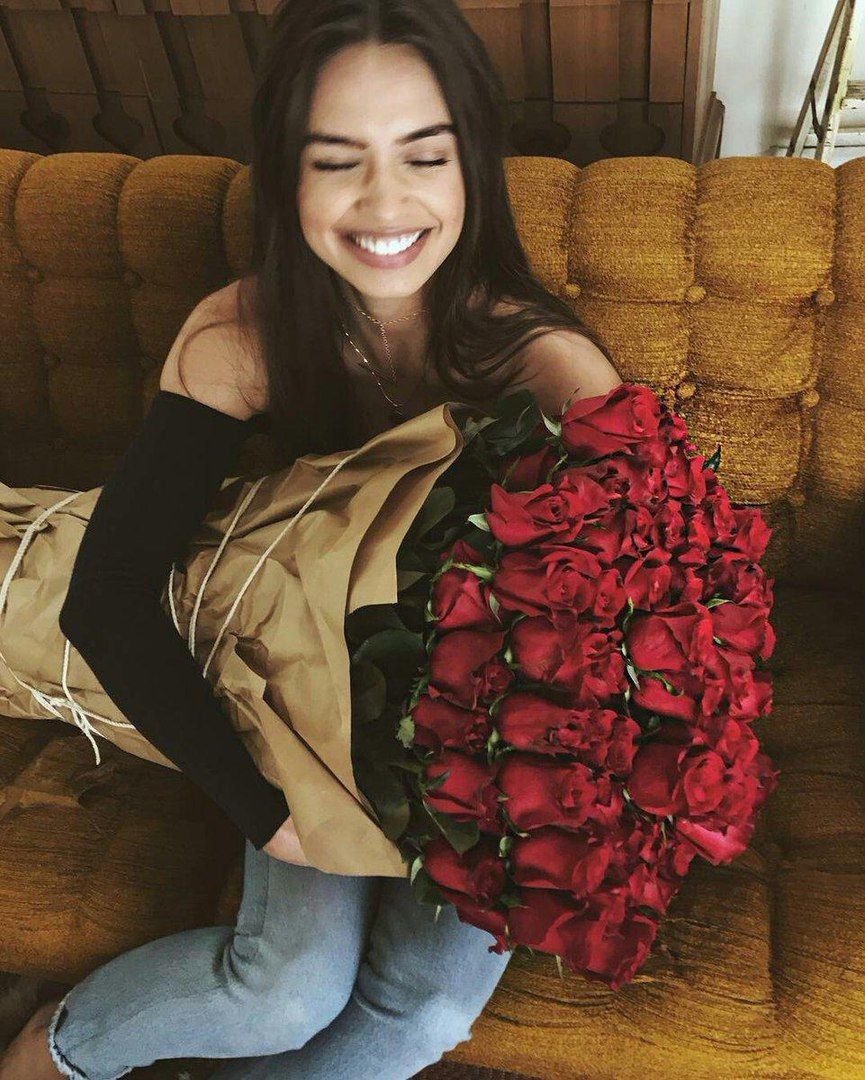 Смешные мемы Девушка с букетом роз