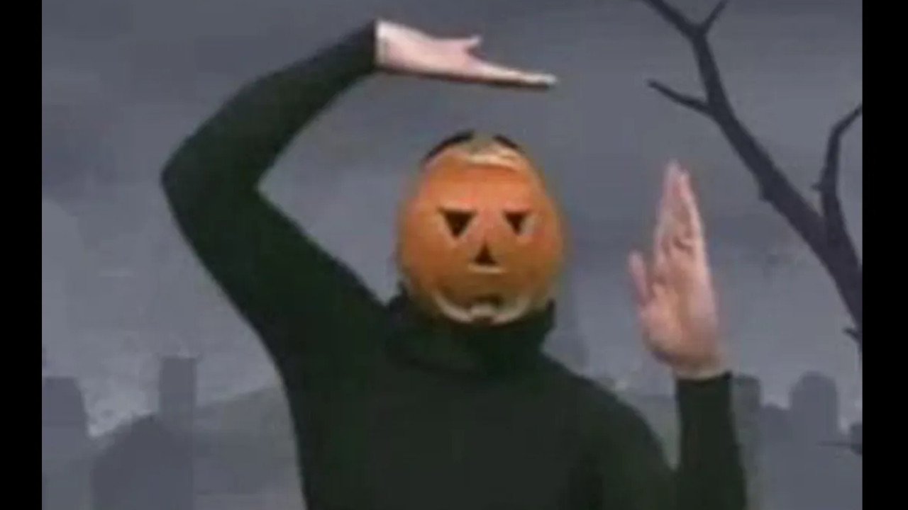 Мем с тыквой на голове
