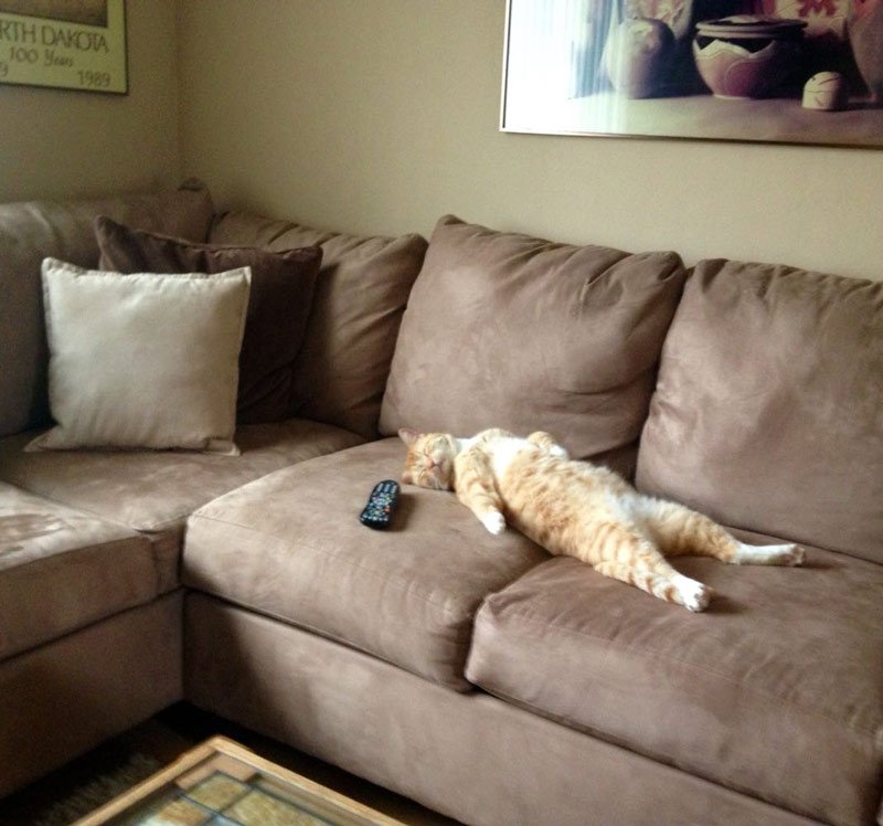 Кот развалился на диване