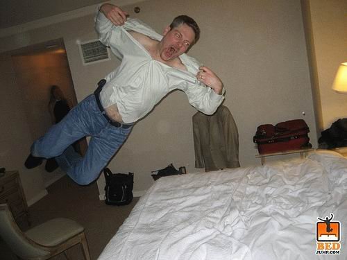 Прыжок мужика в кровать
