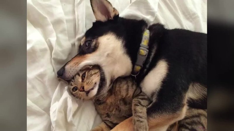 Смешные мемы Девушка держит собаку за морду