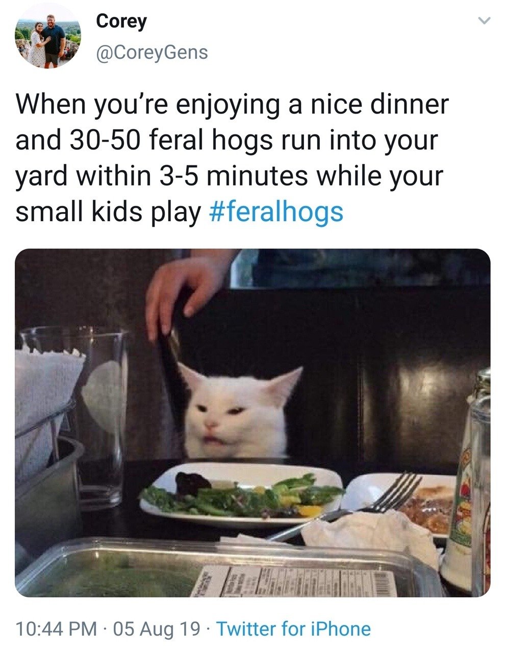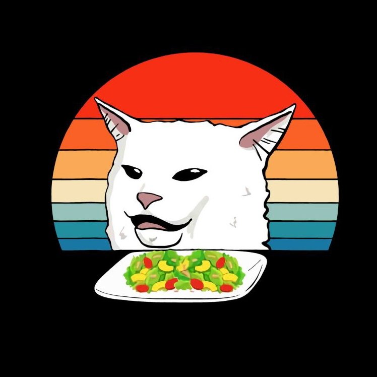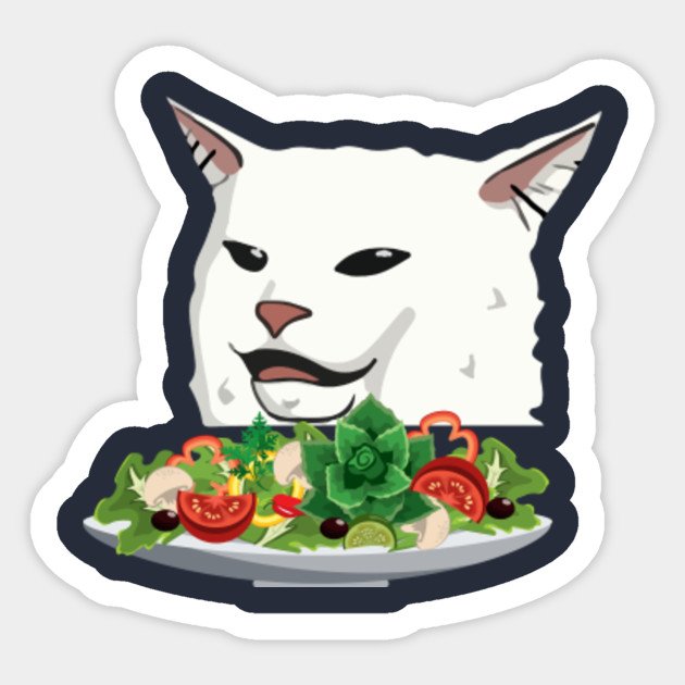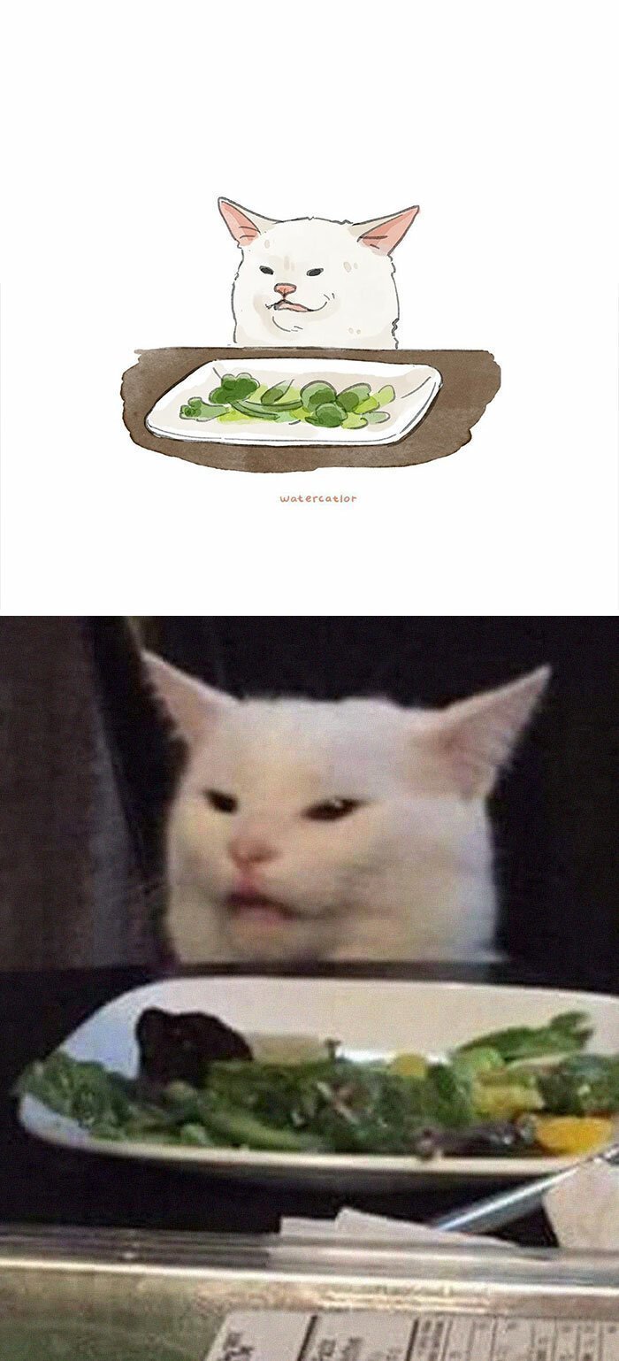 Мем кот с салатом и женщина