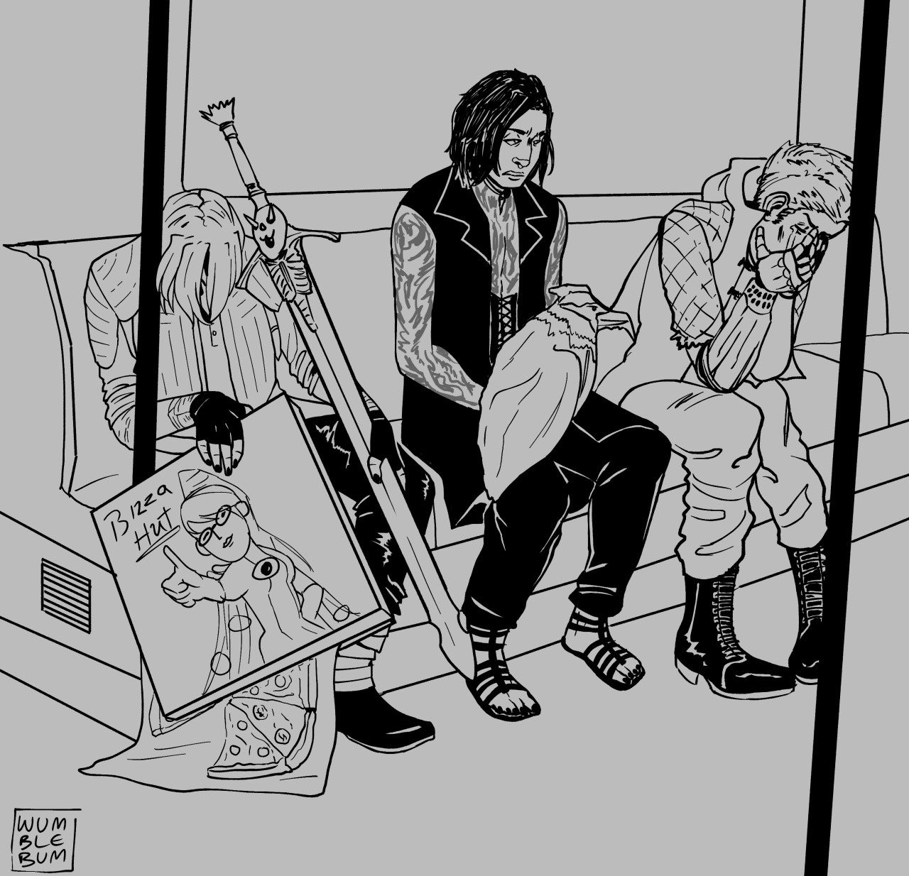 В метро невеста готка и девушка с пиццей