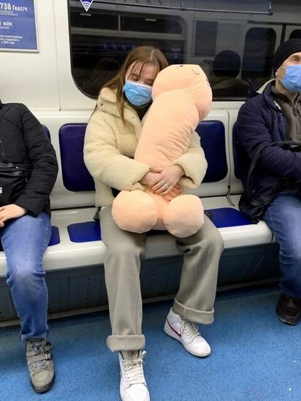 Девушка с пиццей в метро
