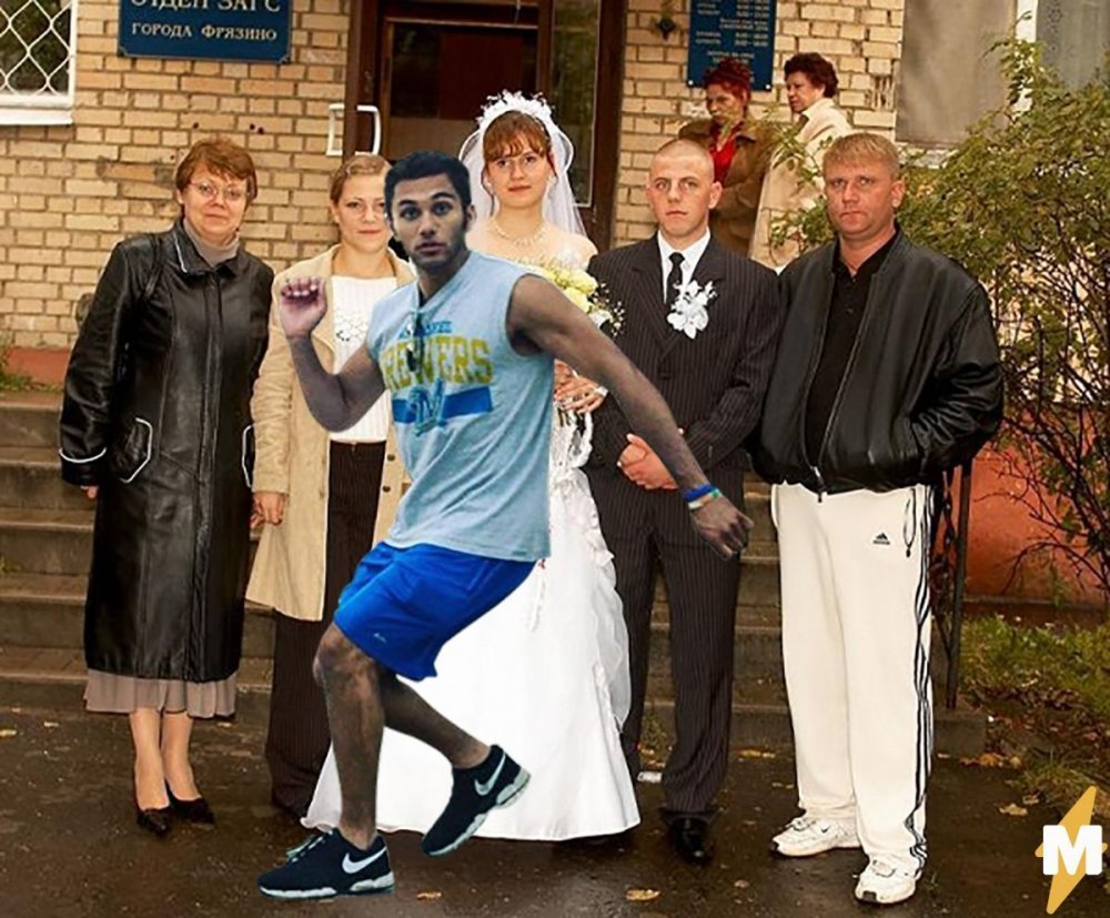 Смешные мемы Мужик на свадьбе в спортивках
