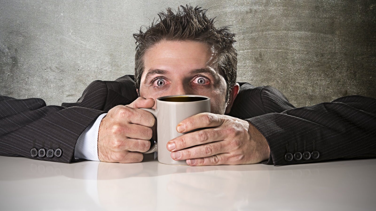 Уставший человек с кофе