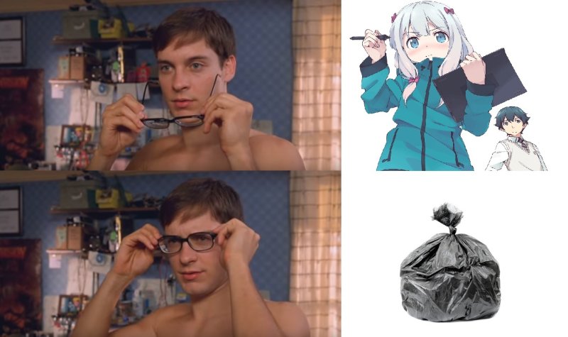 Мем с Питером Паркером протирает очки