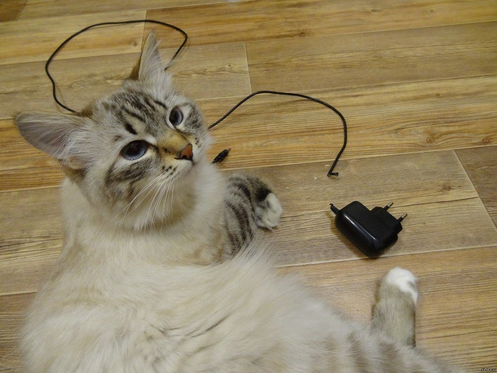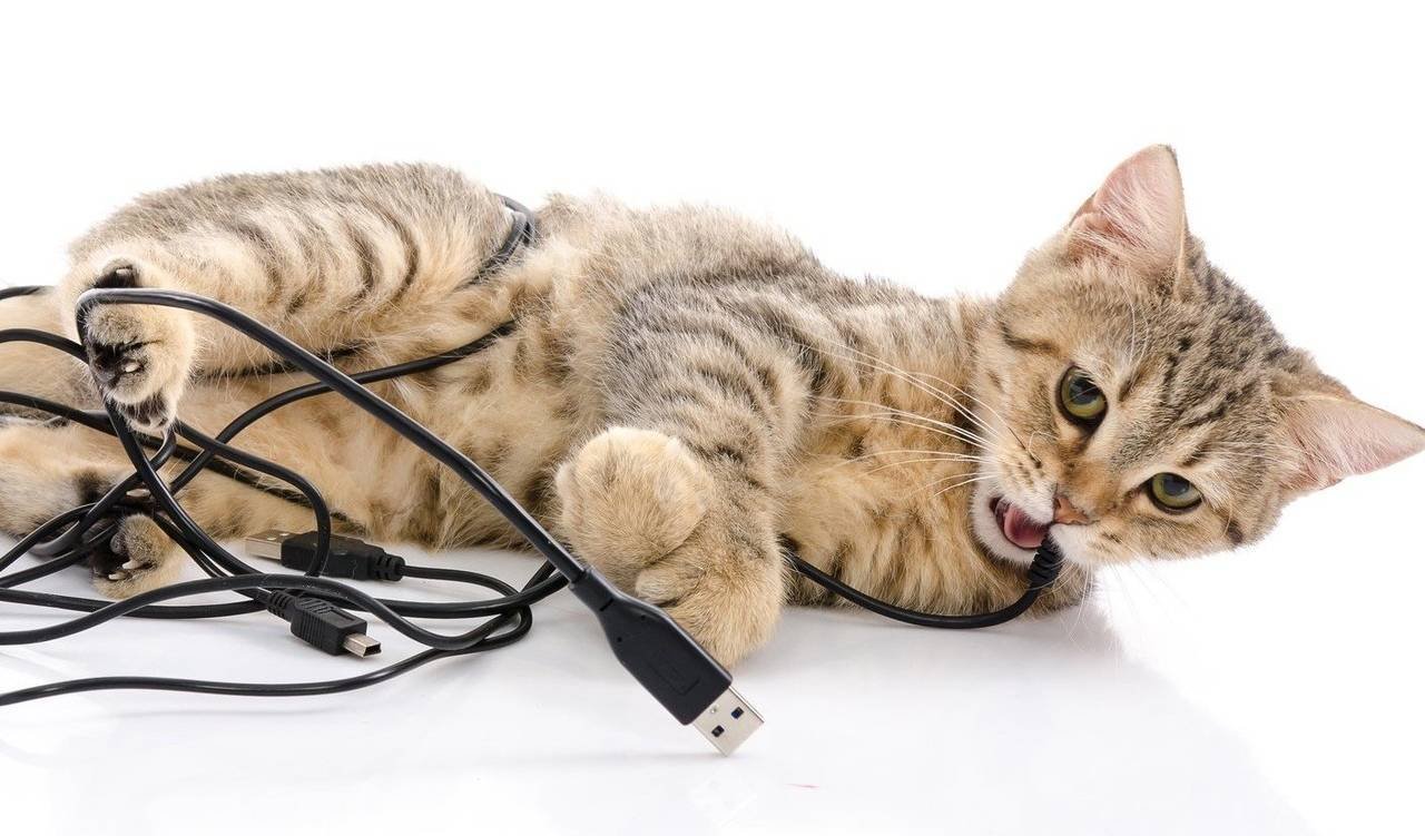 Кот сгрыз кабель