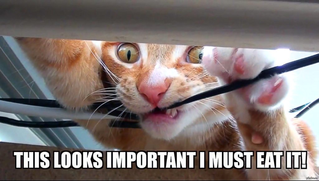Смешные мемы Кот перегрызает провод