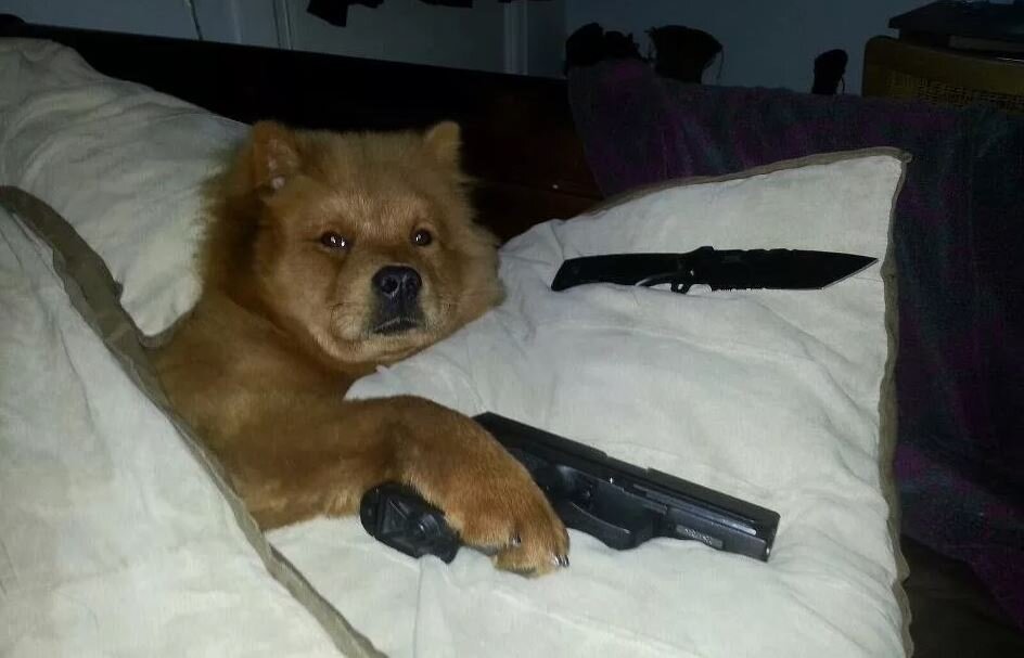Собака с оружием Мем