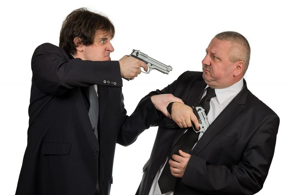 Человек угрожает пистолетом