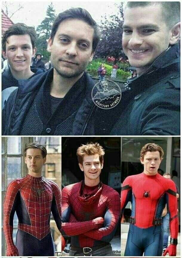 Тоби Магуайр Эндрю Гарфилд и том Холланд
