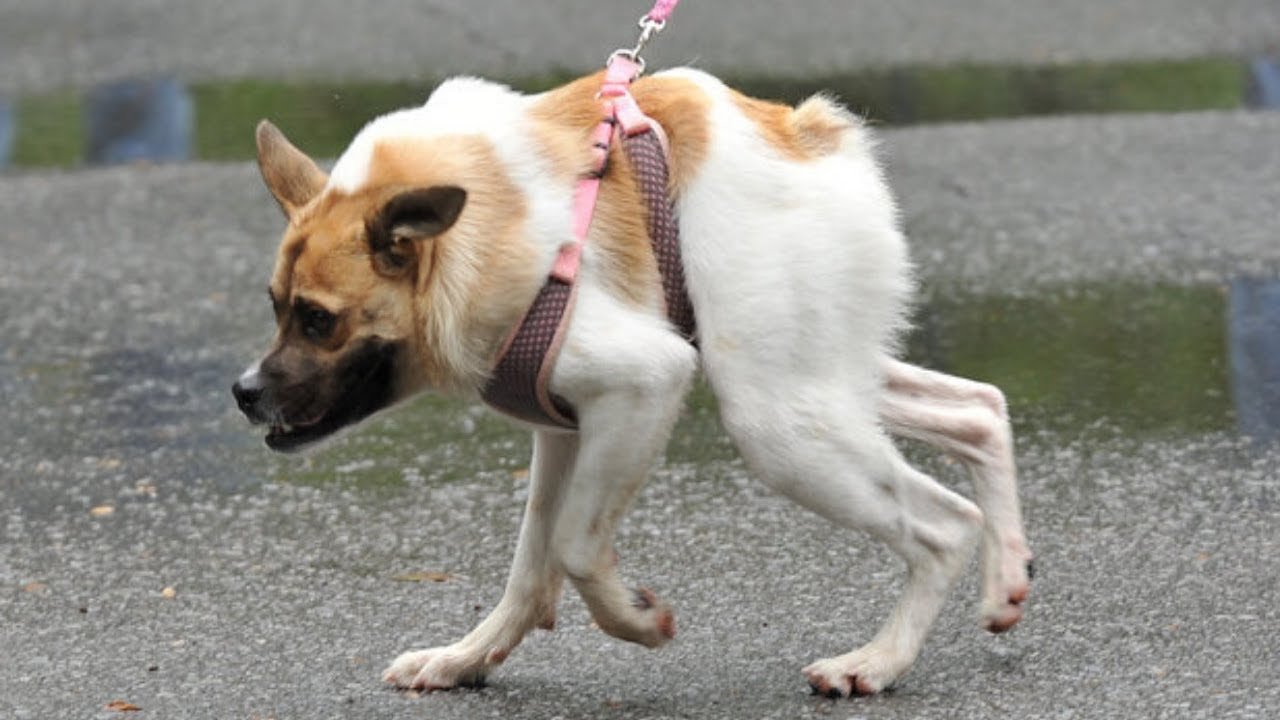 Собака Квазимодо с коротким позвоночником