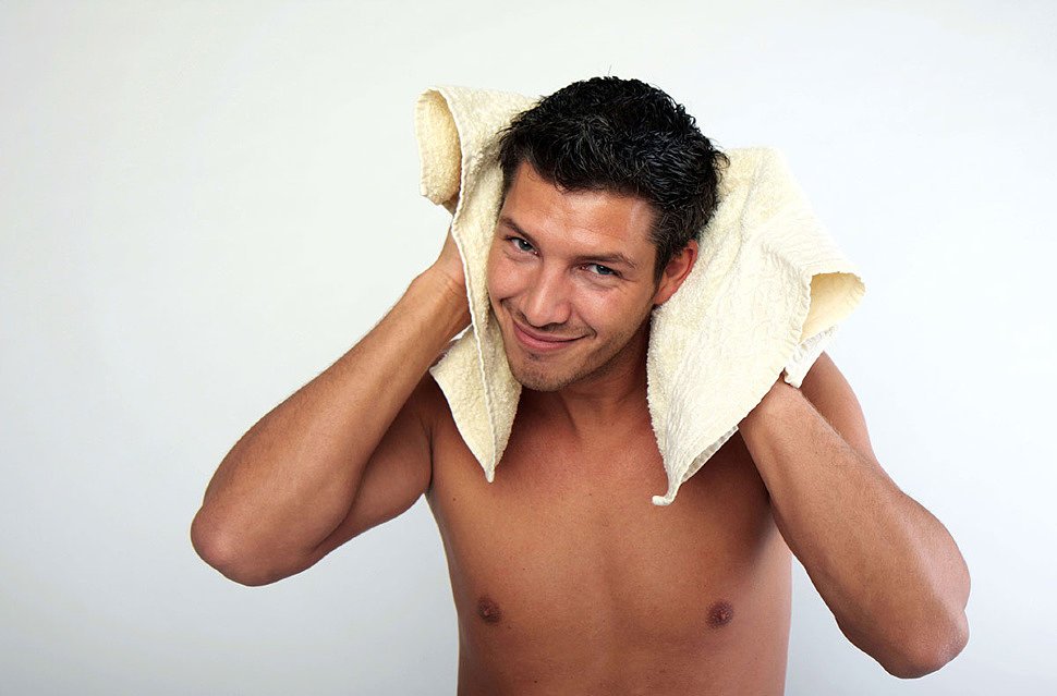 Мужчина с полотенцем на голове