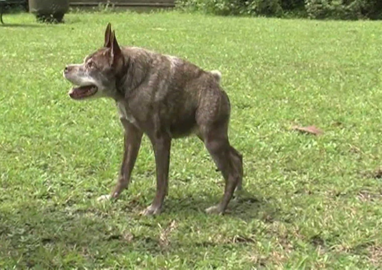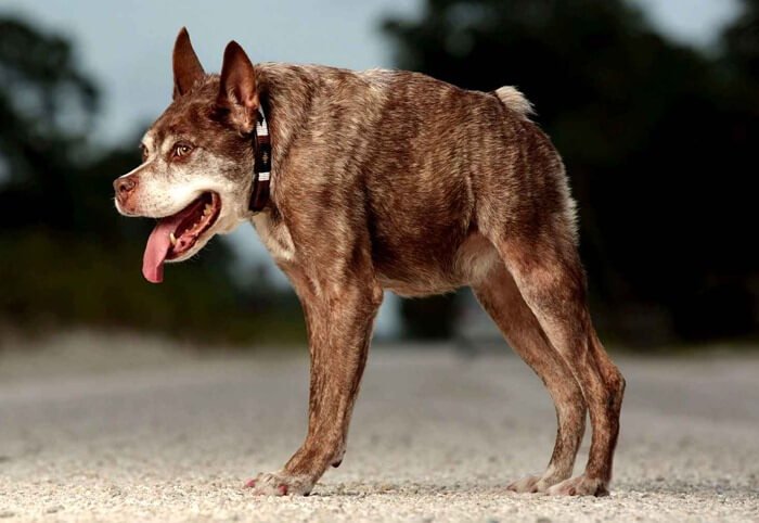Собака Квазимодо с коротким позвоночником
