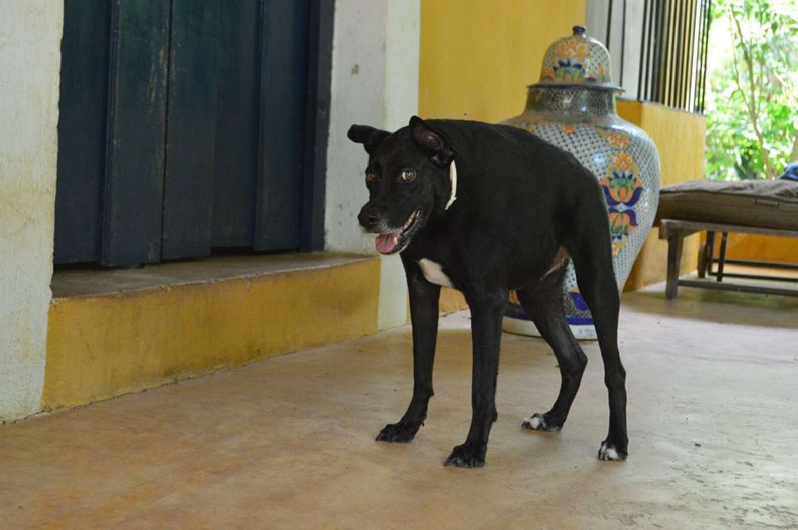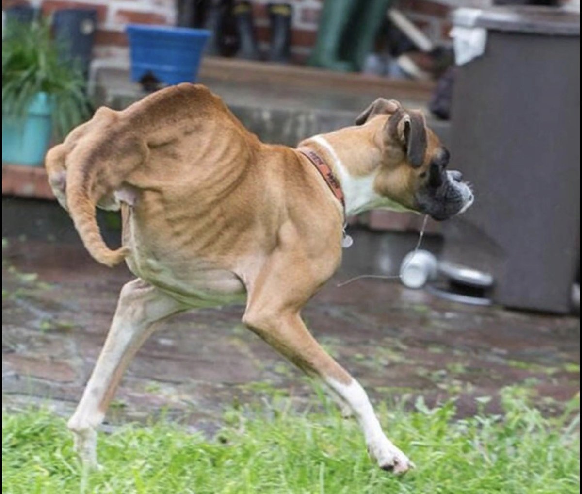 Побитая сутулая собака