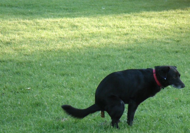 Собака какает