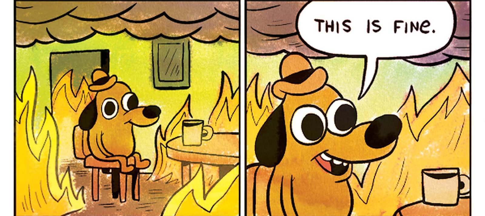 Мем собака в огне пьет чай
