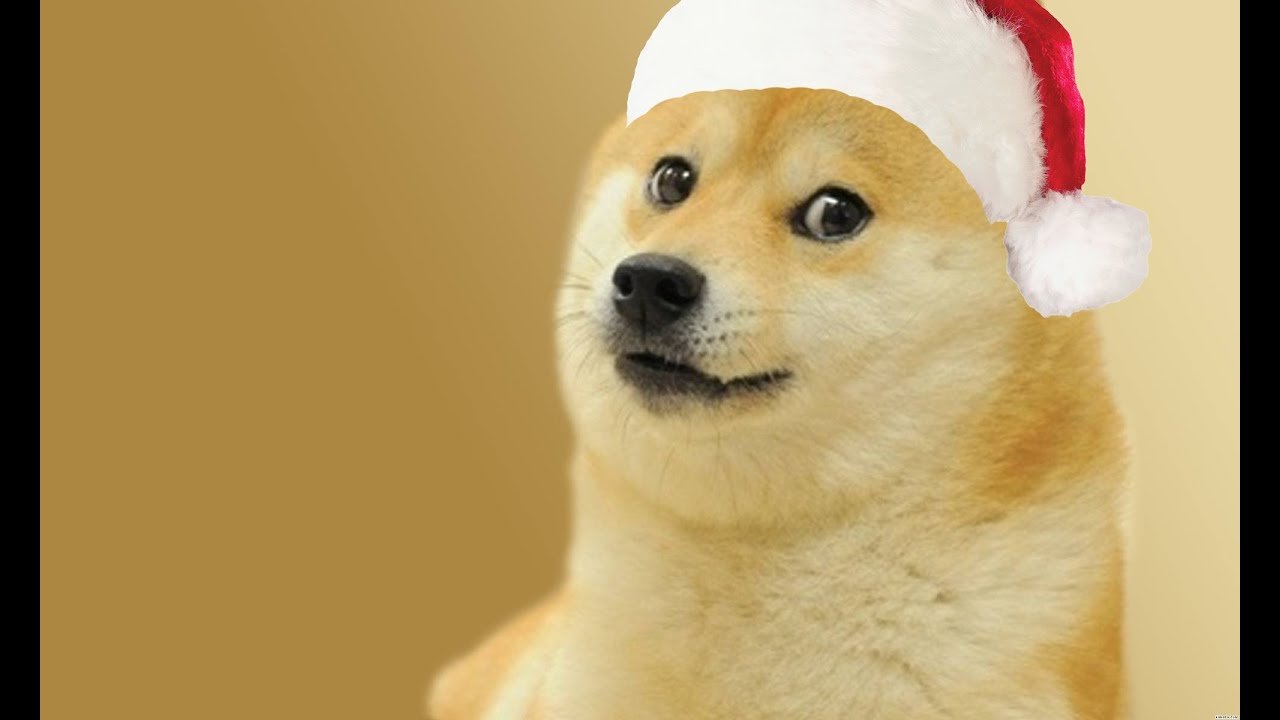 Собака в новогодней шапке из мема