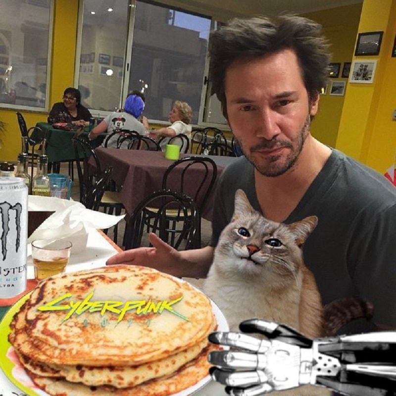 Кот с блинами Мем