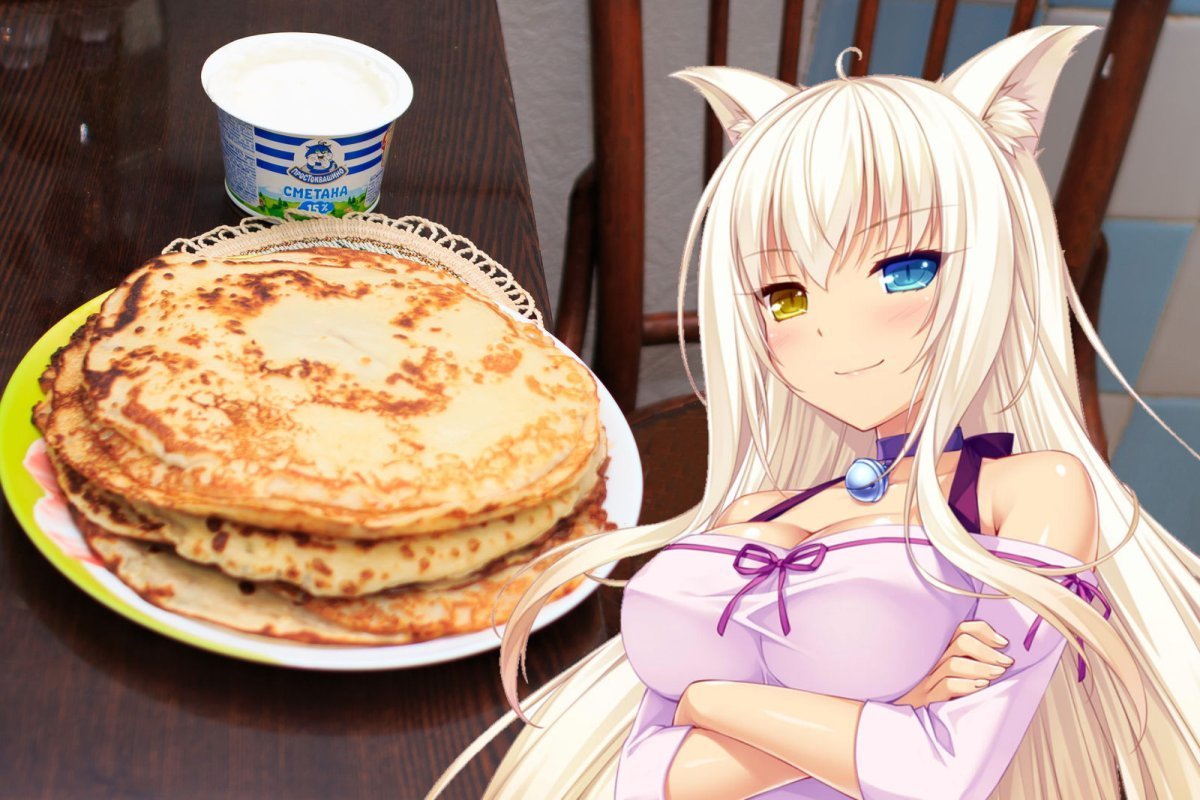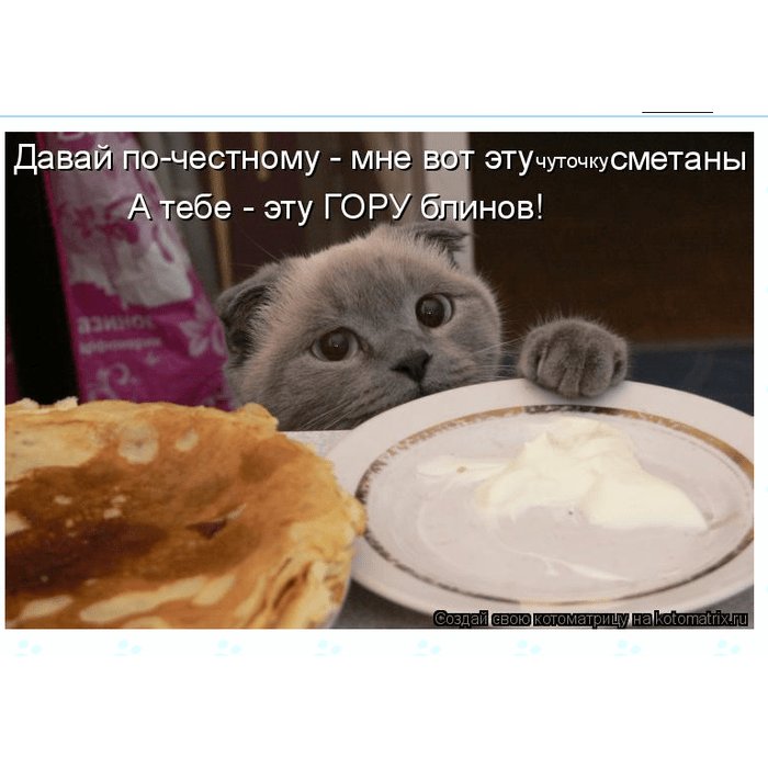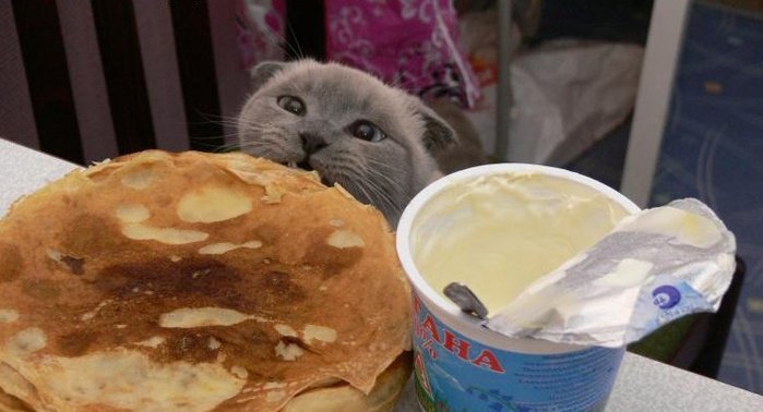 Кот с блинами и сметаной