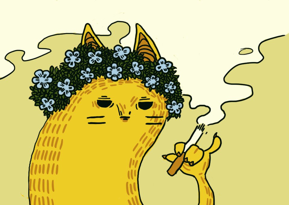 Кот курит