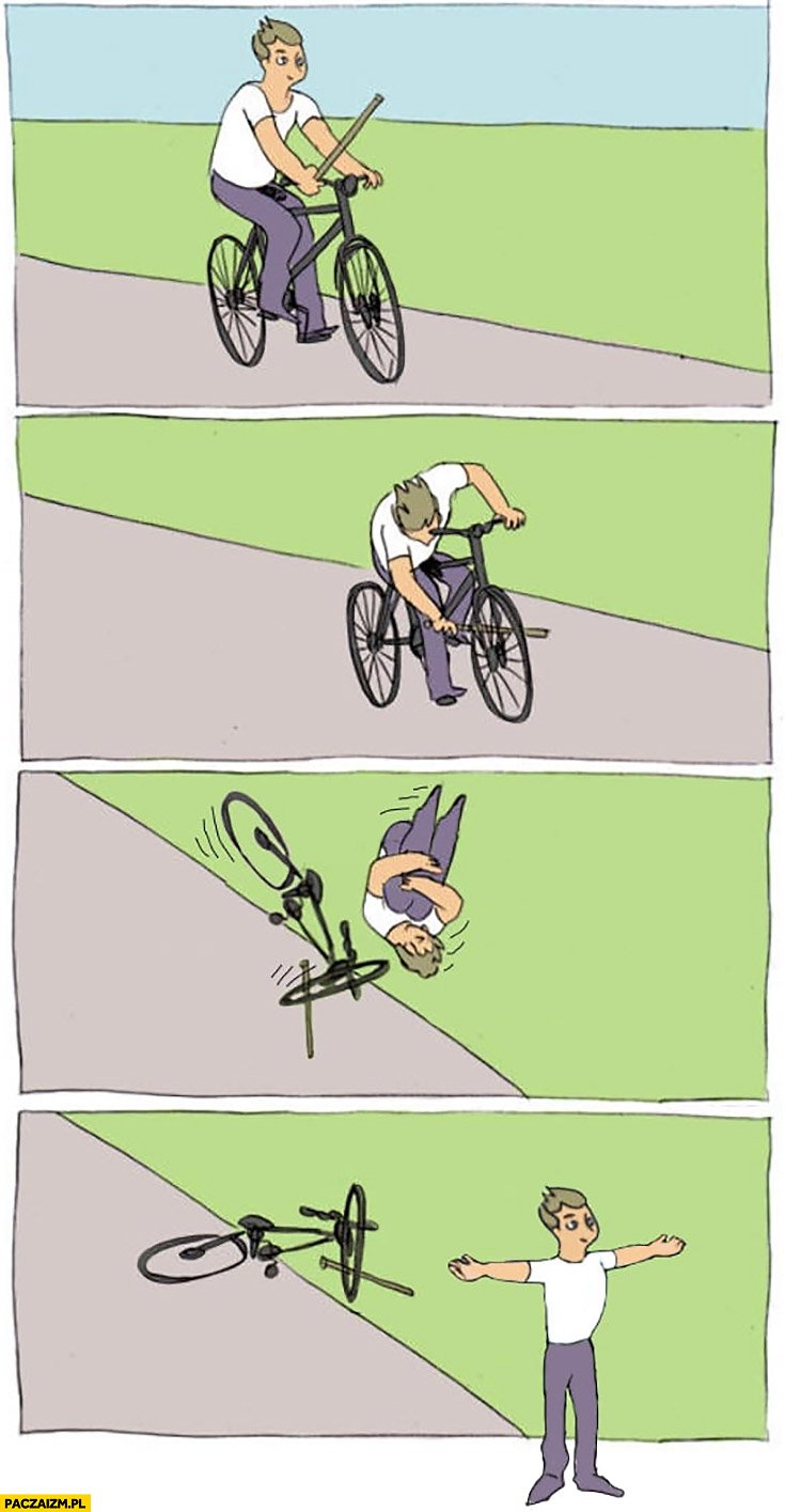 Смешные мемы Человек на велосипеде палка в колесе
