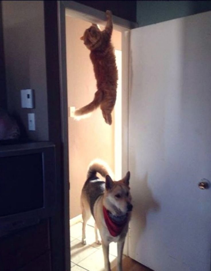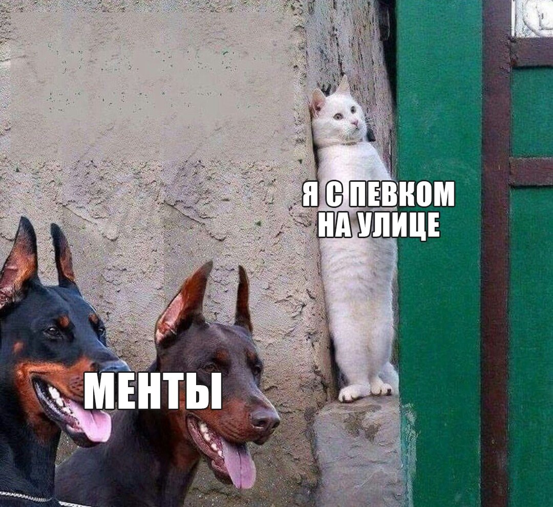 Мем кот спрятался от собак