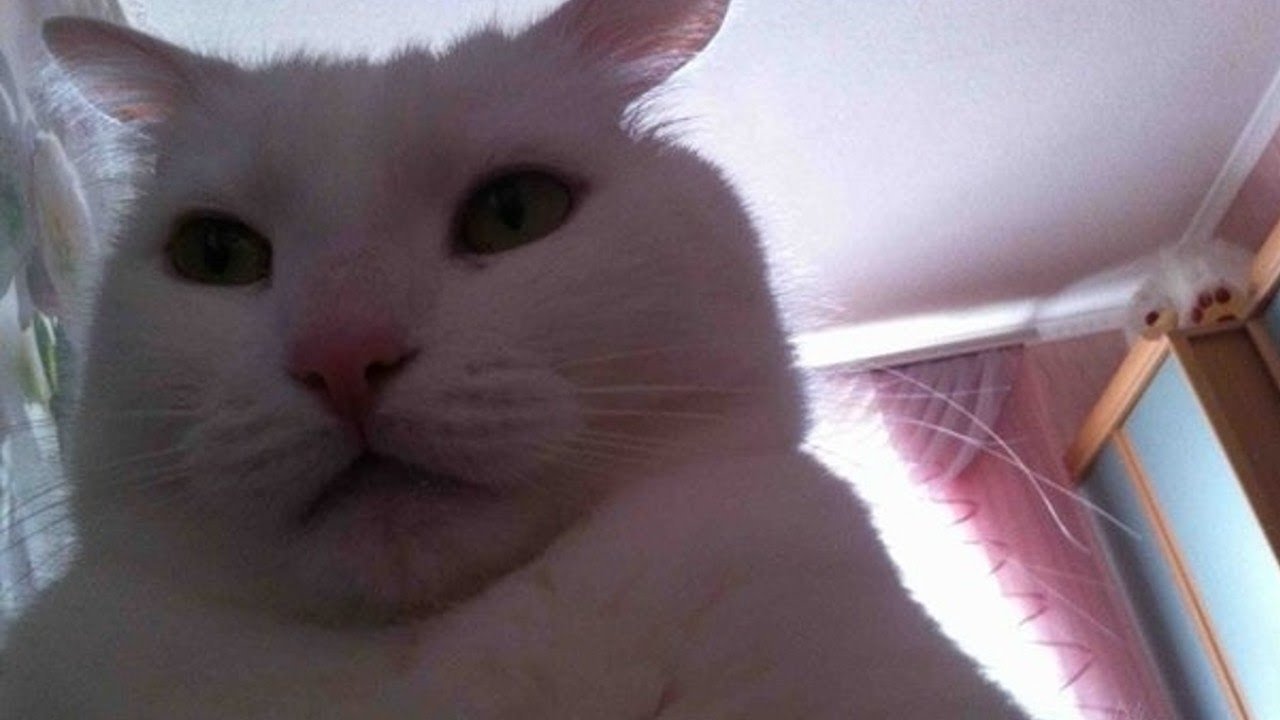 Кот Мем сморти в камеру
